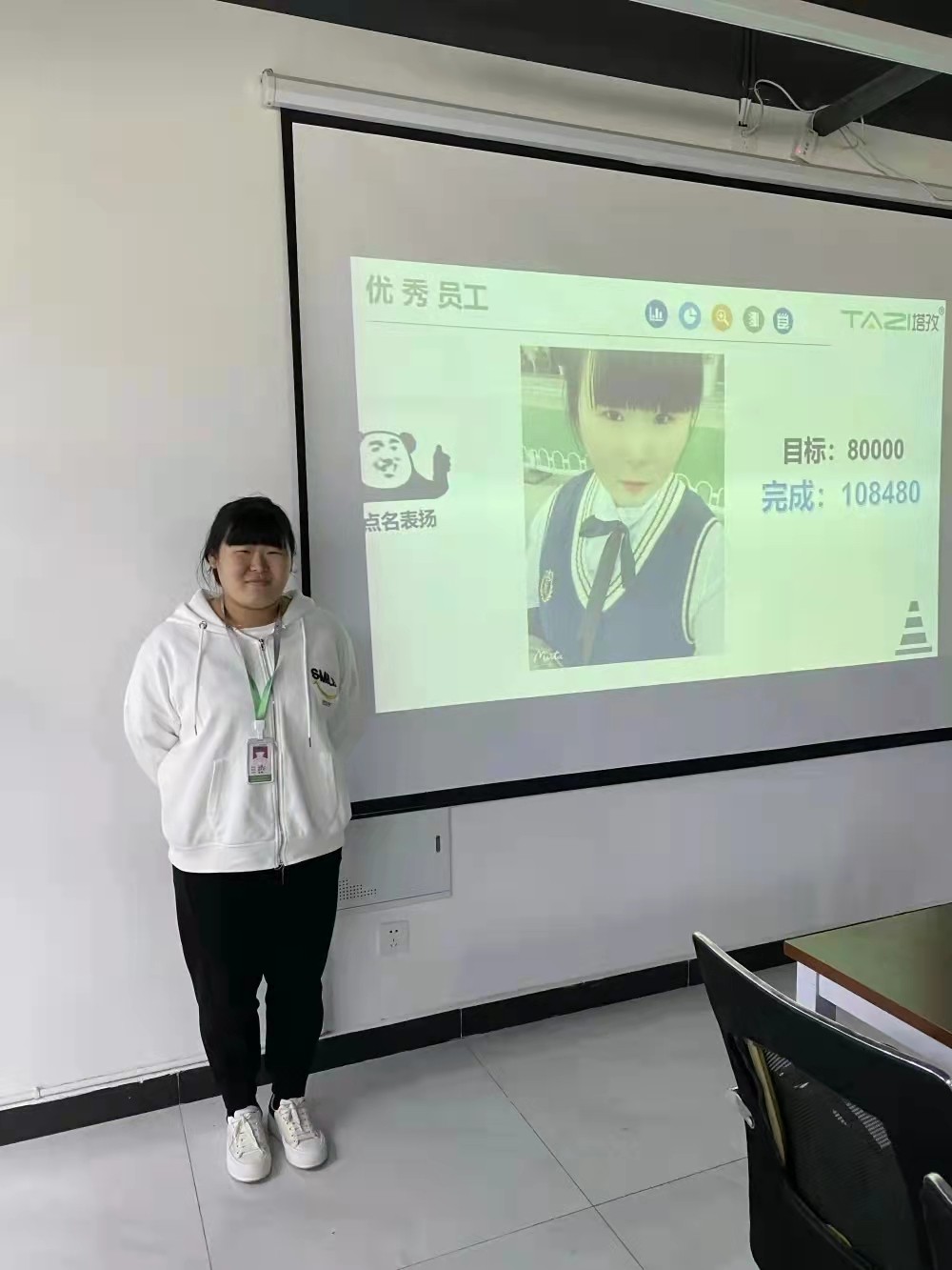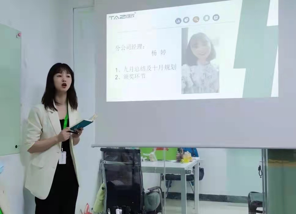 塔孜公司總部大區(qū)經理兼蚌埠公司總經理鄒白云女士,上臺致辭,她表示秋天是個收獲的季節(jié),為了完成九月的共同業(yè)績目標,公司全員上下一心,群策群力,奮力拼搏;月底沖刺雖略有遺憾,但是完全展現出塔孜人不拋棄不放棄、善始善終的企業(yè)文化。