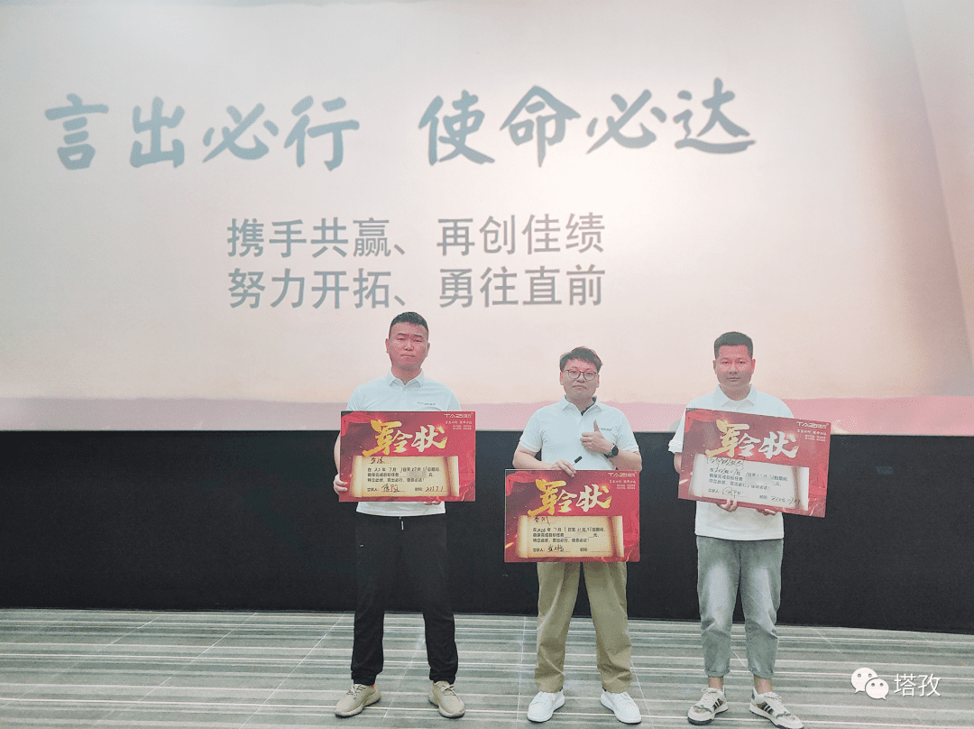 在主持人的帶動下,各分公司和團隊紛紛展示出了最強士氣,喊出最嘹亮的口號,一句句氣勢如虹的口號,喊出了塔孜精英們的錚錚誓言,也展示出了大家對下半年各項目標必勝的信心。